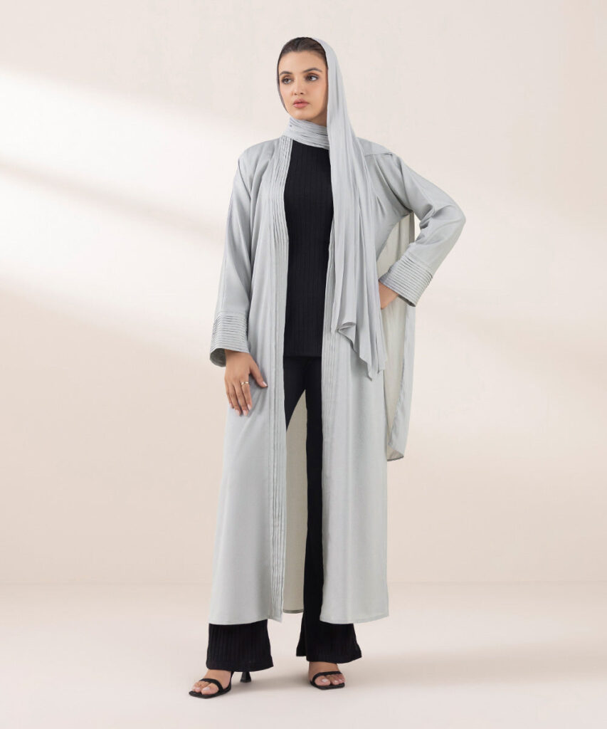 Vendor: Modest Wear Type: Abaya Set Price: 6490.00 Full length, abaya in textured fabric. Front open placket and sleeve cuff with pleated fabric detail. Hijab included. Details: Colour: Beige Fabric: 100% Polyester SIZE & FIT Model Height: 5 Feet 6 Inches Model Wears: M Size S M L XL Length Front (HSP To HEM) 132 […]